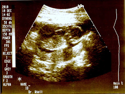 Thanks for a great visit! I'm telling you, when Dr. Wyatt was doing the ultrasound…..baby turned its head to us and smiled. So cool! Baby even raised its little arm to say…..here I am! Enjoyed my time with Duke and Harley too…..the best dogs ever! See you in February! Love you!