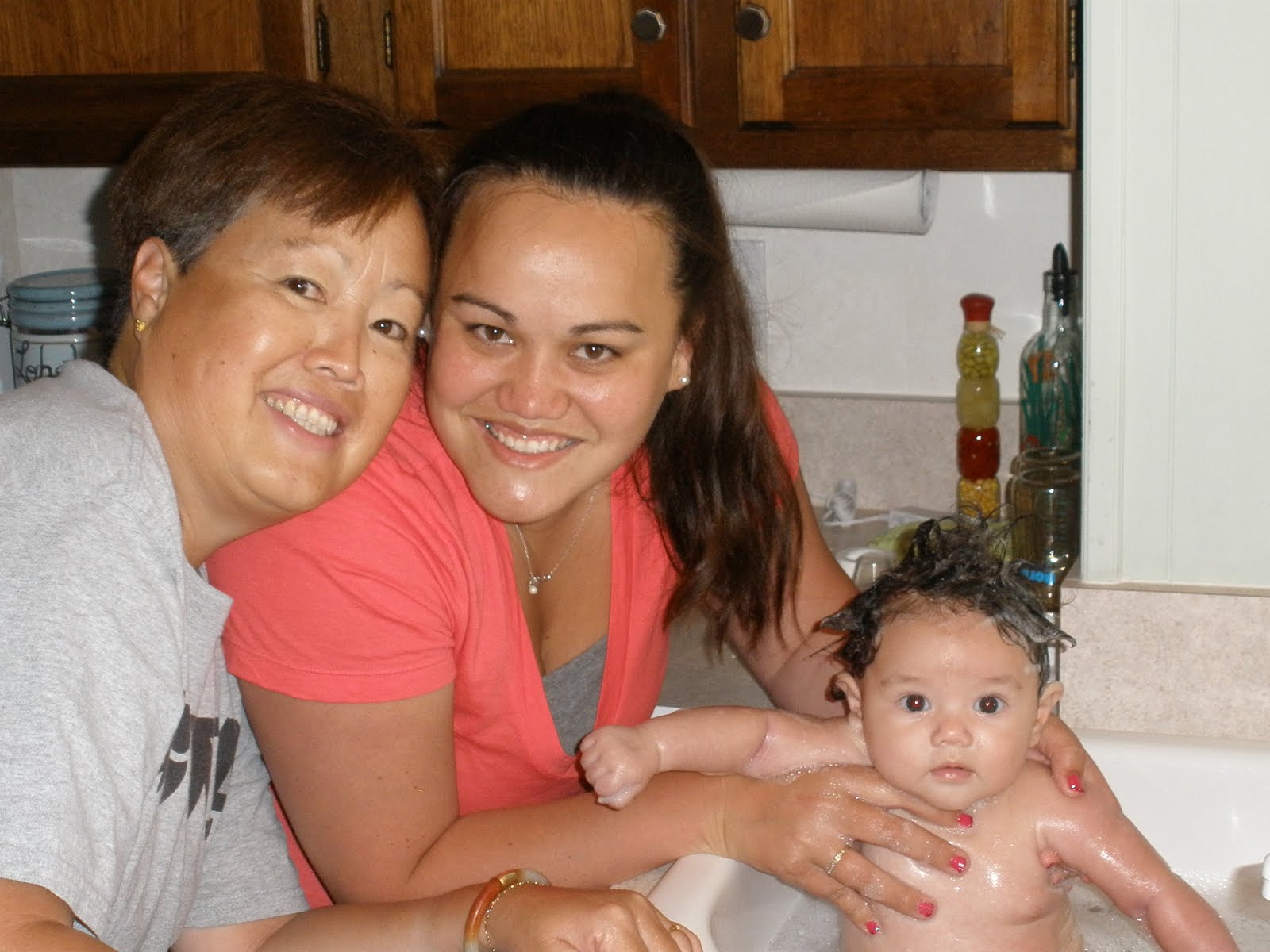 After we finished feeding the ducks, we had fun giving Ke’alohi a bath in the kitchen sick. She could stay in there for hours but then she would prune. Hehehe. We are all taking advantage of the time when she can still fit in the sink. Soon she will only be able to take baths in the tub like all of us. Boring!