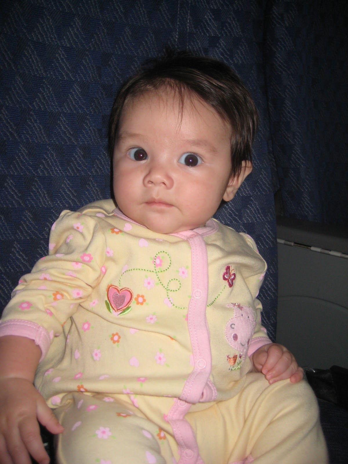 Once we got through security we bought some food and water and waited for our plane. Once we boarded, it took us a while to get settled and comfortable in our seats. We learned very quickly that if you think your seat is tight with just yourself in it, try having a baby sprawled out on your lap. She did great though and slept most of the way on Lucas and woke up about 45 minutes prior to landing, giving us just enough time to change her diaper and give her a bottle.