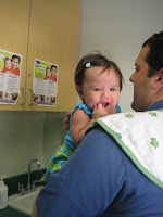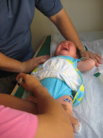At this appointment with Dr. Ouchi, Ke’alohi weighed in at 16 pounds and 4 ounces, measured 25 inches and her head circumference was 16.75 inches. Though the increase in Ke’alohi’s weight and height (mostly weight) surprised me, she assured me that Ke’alohi is growing well, in the 95th percentile for weight and 75th for height. We then talked about introducing solids into Ke’alohi’s diet, but then all decided that we should wait until the next appointment at six months to really make any changes. For now, she was doing great on her formula.