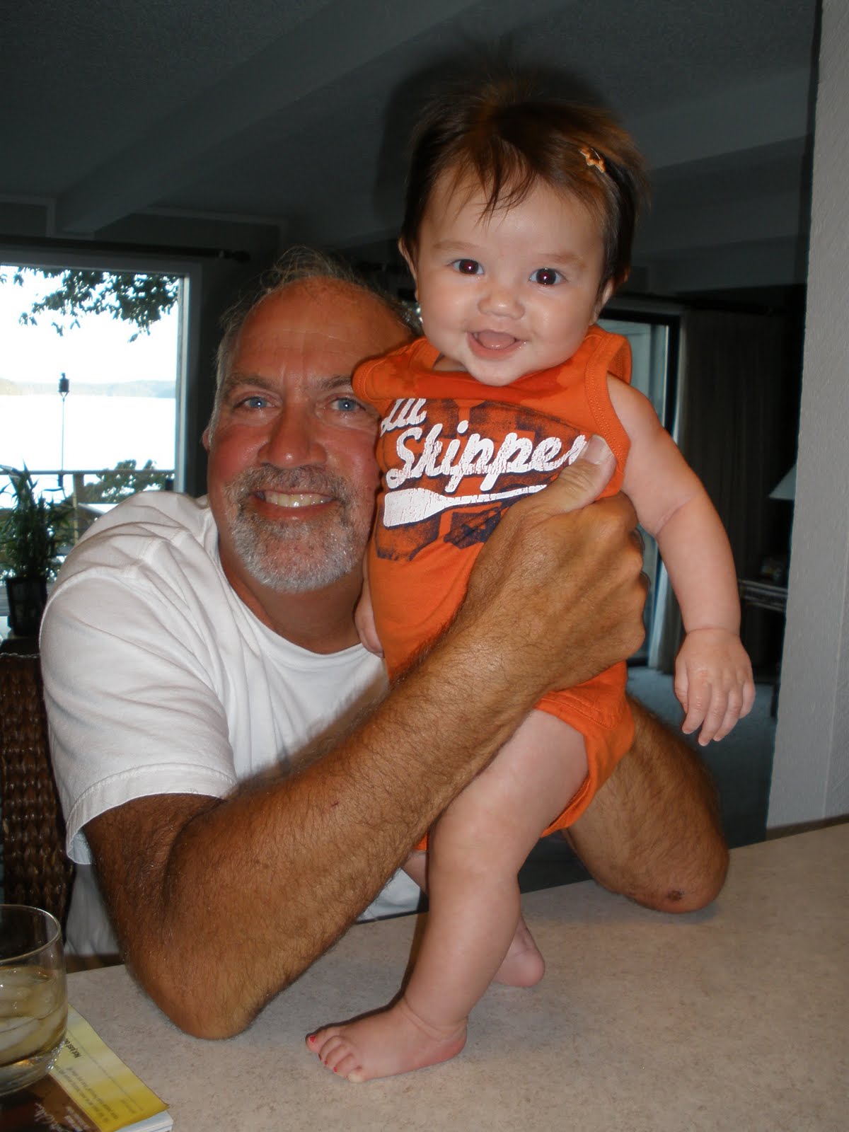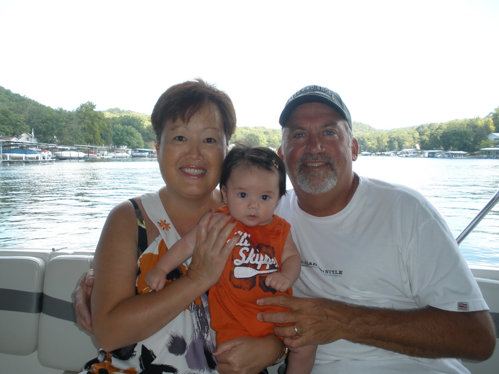 Not only is today the 10th anniversary of 9/11 but it is Grandparents Day. We are very lucky to have both of our parents in Ke’alohi’s life and even luckier to be able to spend the day with my parents on the lake. We spent our time on the boat going to Coconuts Caribbean Beach Bar and Grill and the Bagnell Dam which is at the bottom of the lake. It was a clear day and the water was perfect. Puna even took the boat to 43 mph on the way back. It was the fastest she had ever driven in the boat. She made it a point to pass all the pontoon boats along the way.