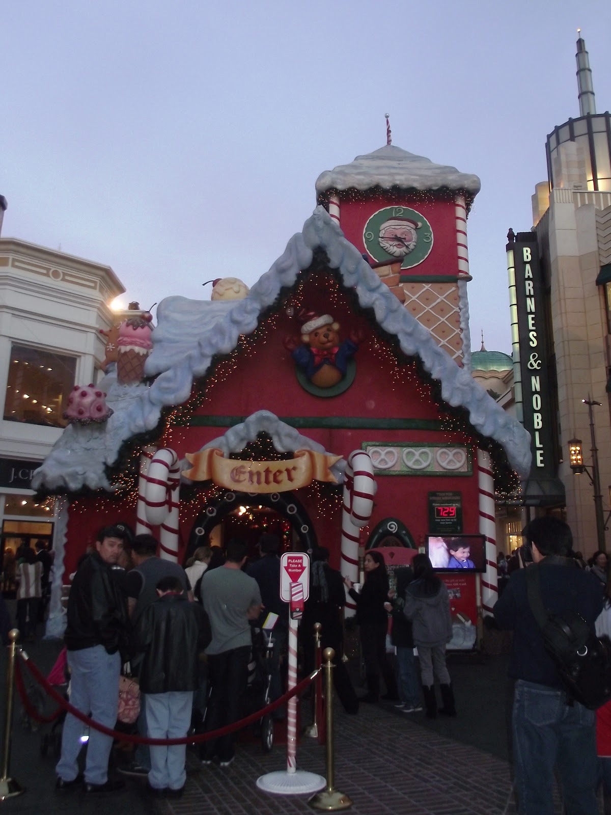 After we picked our number, we walked around, looking inside Pottery Barn Kids, Crate and Barrel and Barnes and Noble. The kids started to get hungry, so we ate at The Farmers Market, which has some of the best selections of foods from around the world. It’s definitely a must-see when in Los Angeles. By the time we were done with dinner, it had been almost three hours and Santa was still like 30 numbers away from us. We admitted defeat and headed home with the hope that we will get to see Santa when we go home to Hawaii this week.